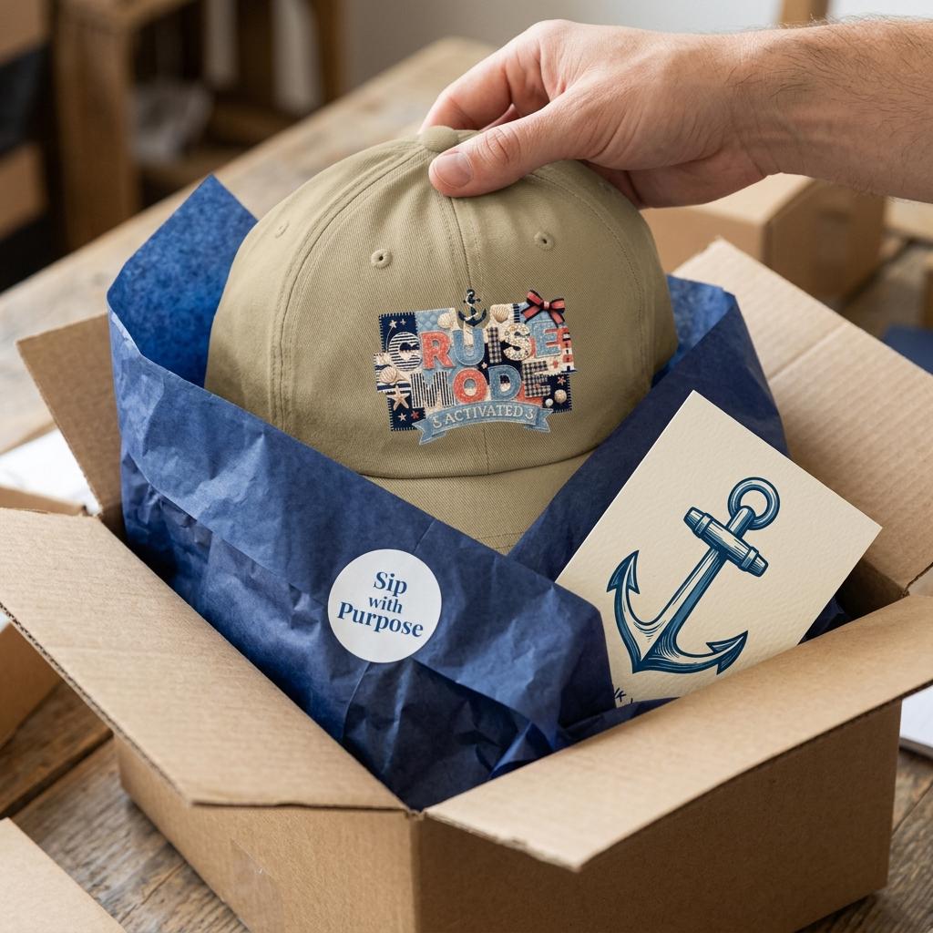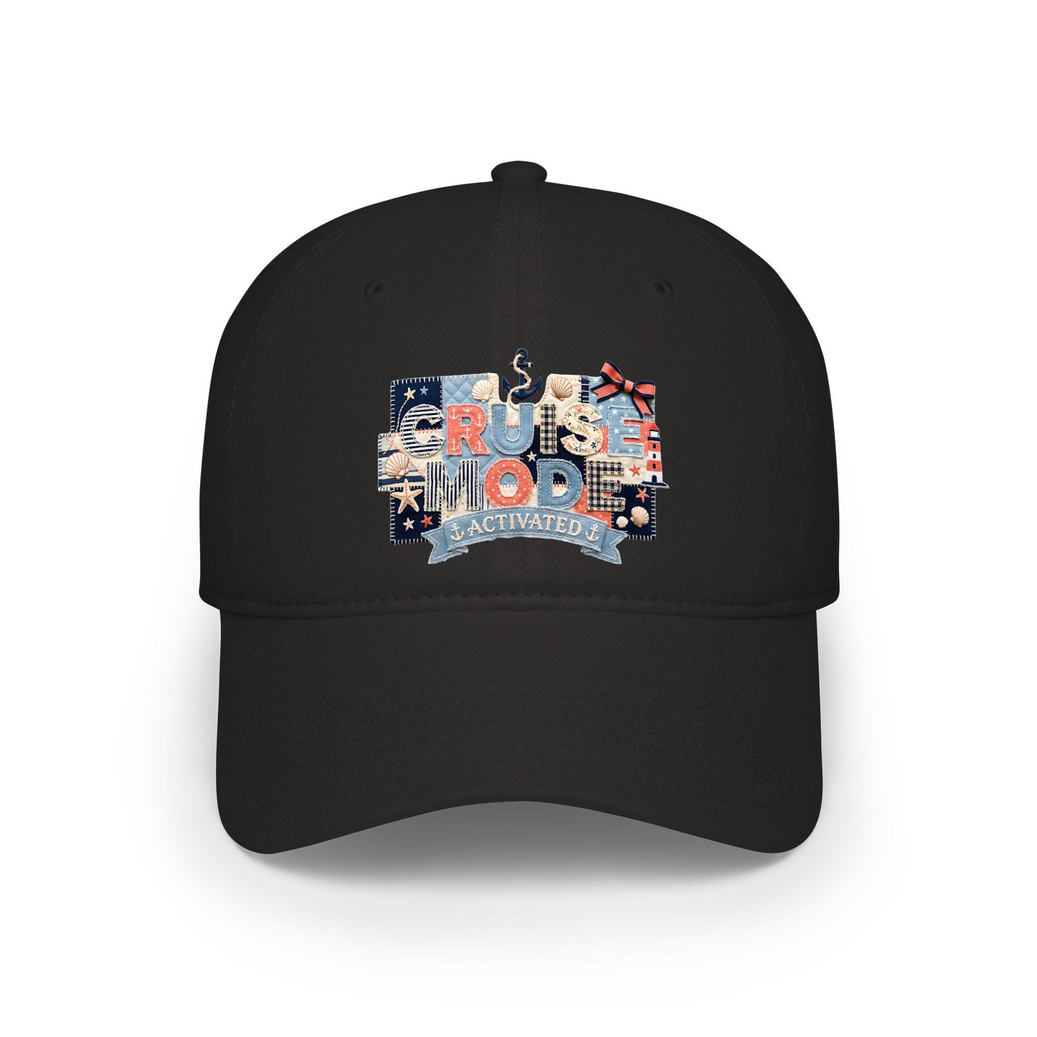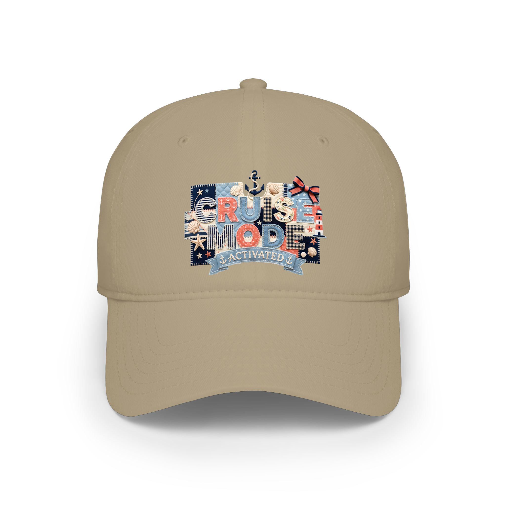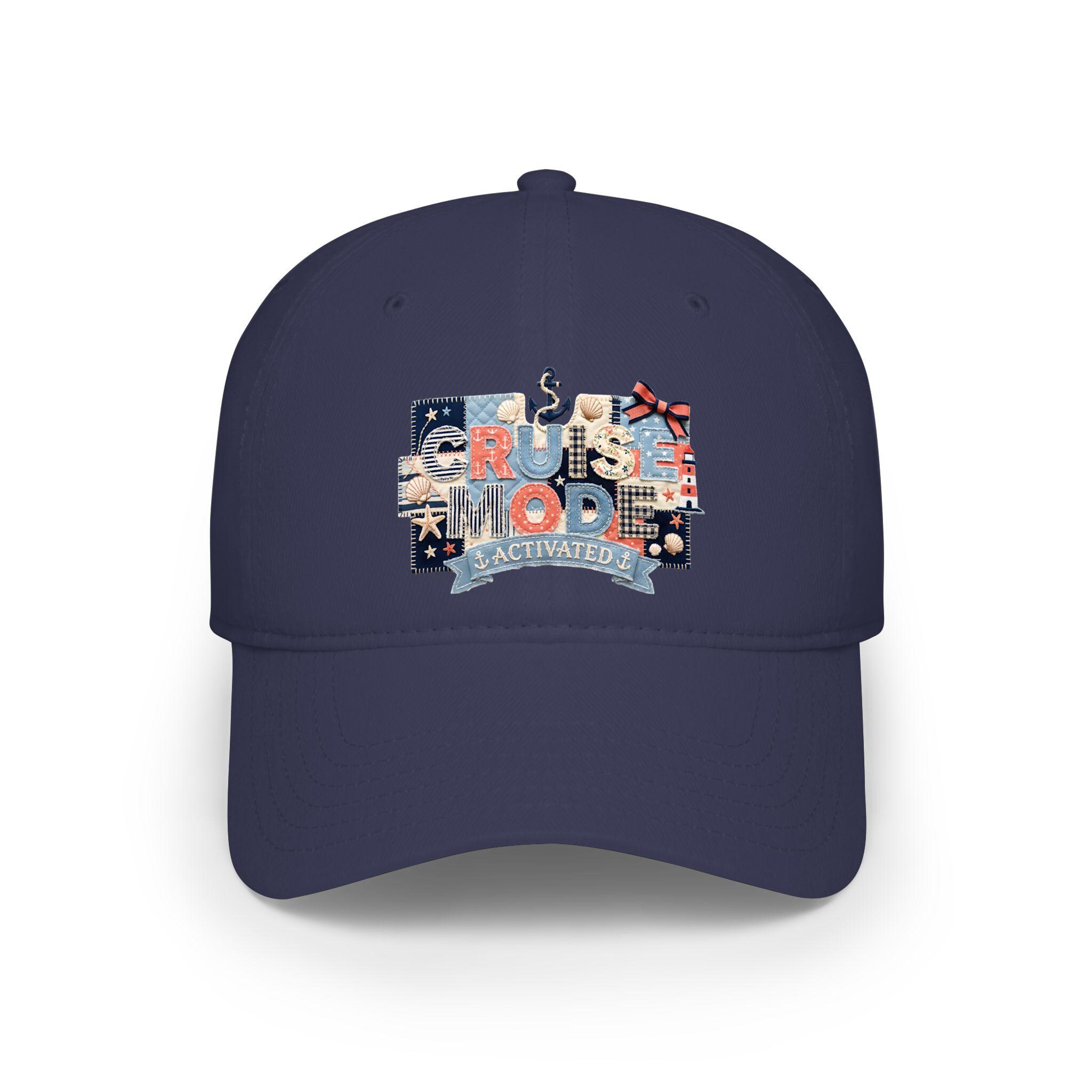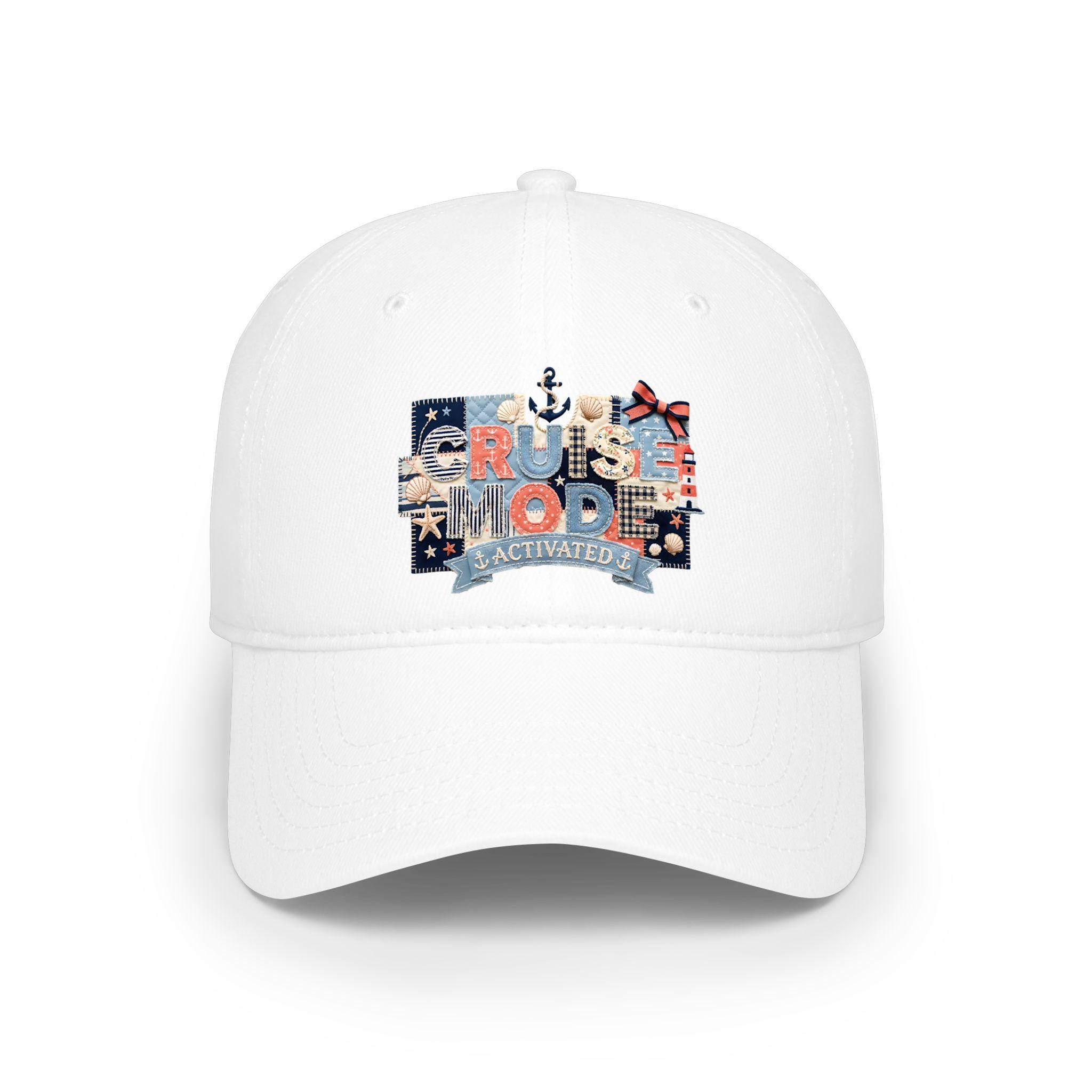 Cruise Mode Activated Hat, Nautical Faux Patchwork Baseball Hat, Family Cruise Trip Gift, Embroidered Look Dad Cap