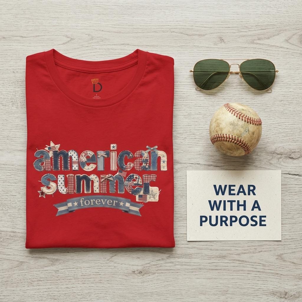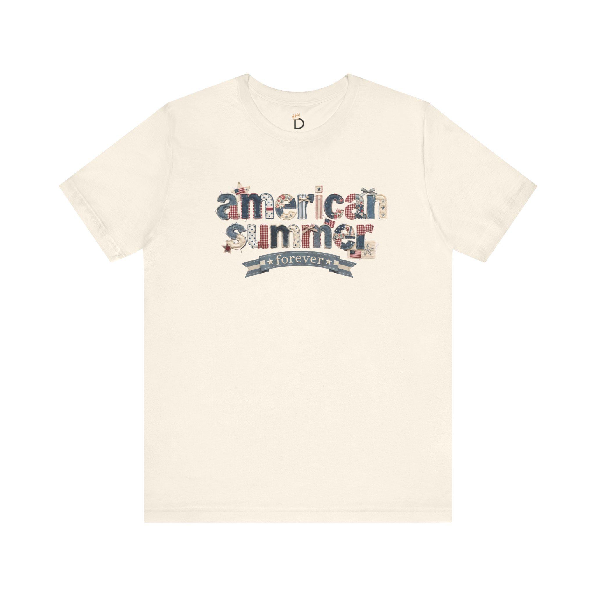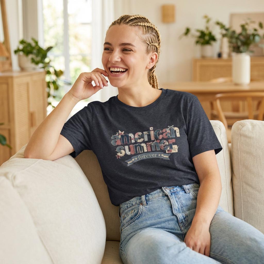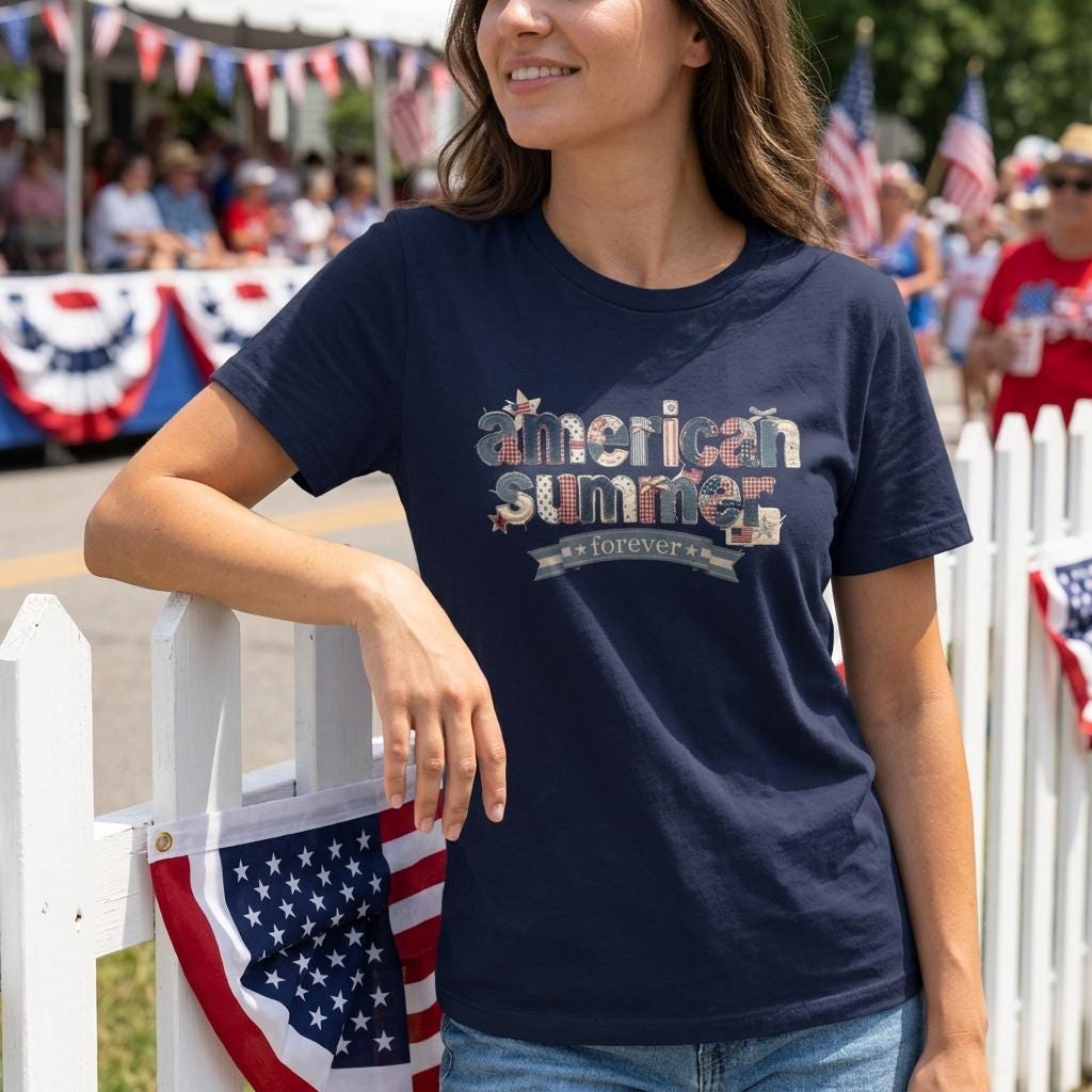 Celebrate the season of sunshine and stars with our "American Summer Forever" premium tee. This design features a stunning 3D-effect collage of vintage Americana textures—including denim, red-and-white gingham, rustic stars, and miniature flags. It’s designed to look like a hand-stitched heirloom, giving you a custom boutique look on the softest shirt you’ll ever own.