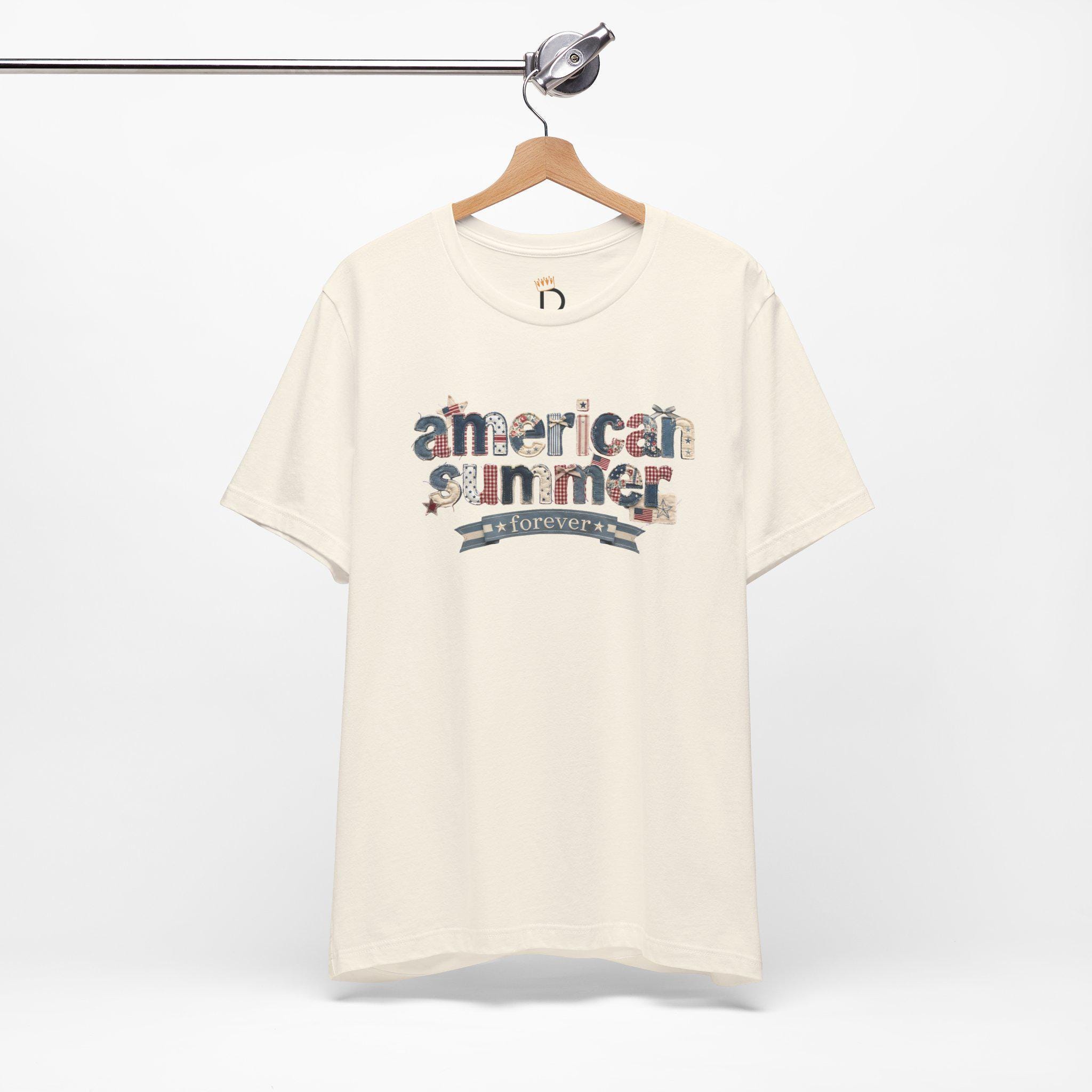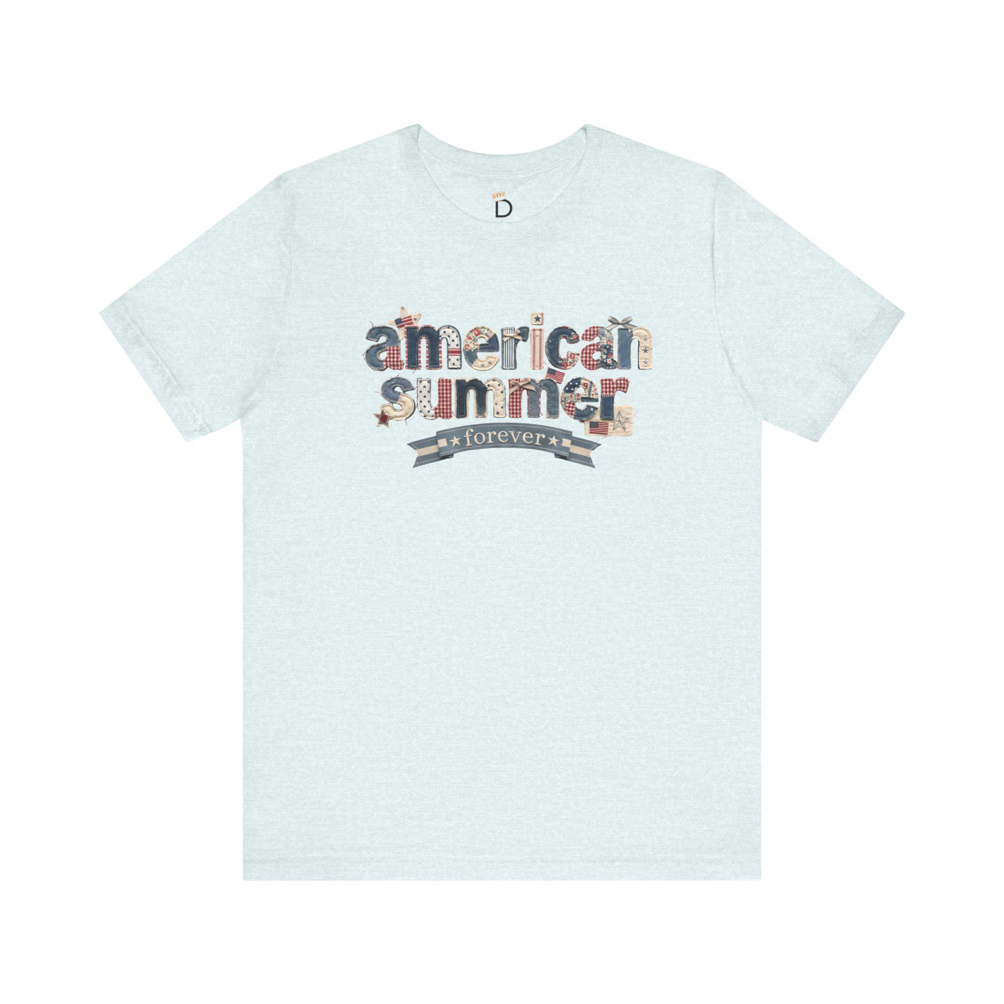 American Summer Forever Shirt, Fourth of July Faux Patchwork Tee, Patriotic T-Shirt, Americana Vintage Flag Patchwork apparel