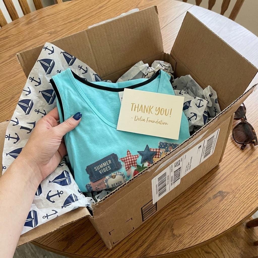 Style with a Soul: 100% of net profits support the Delia Foundation. Every tank helps build a home or provide clean water.
