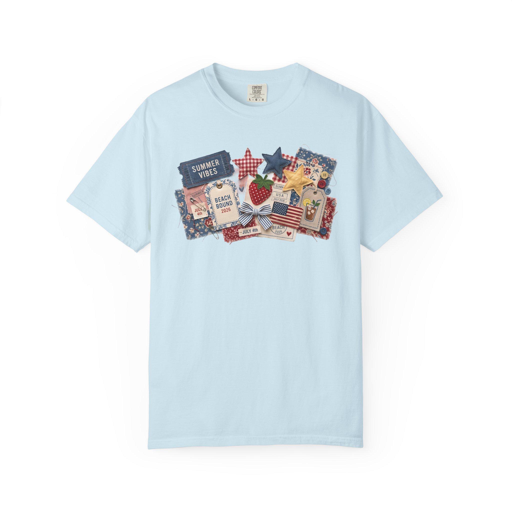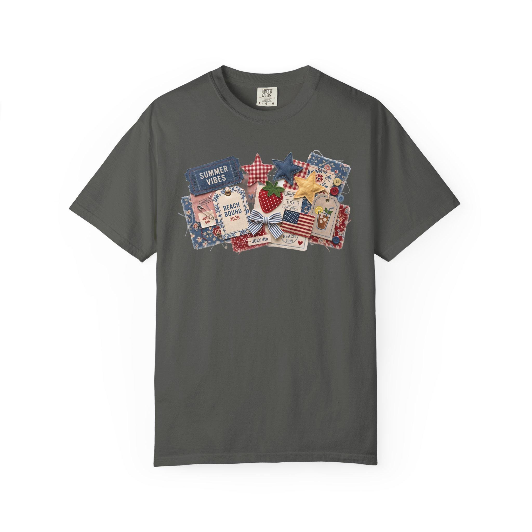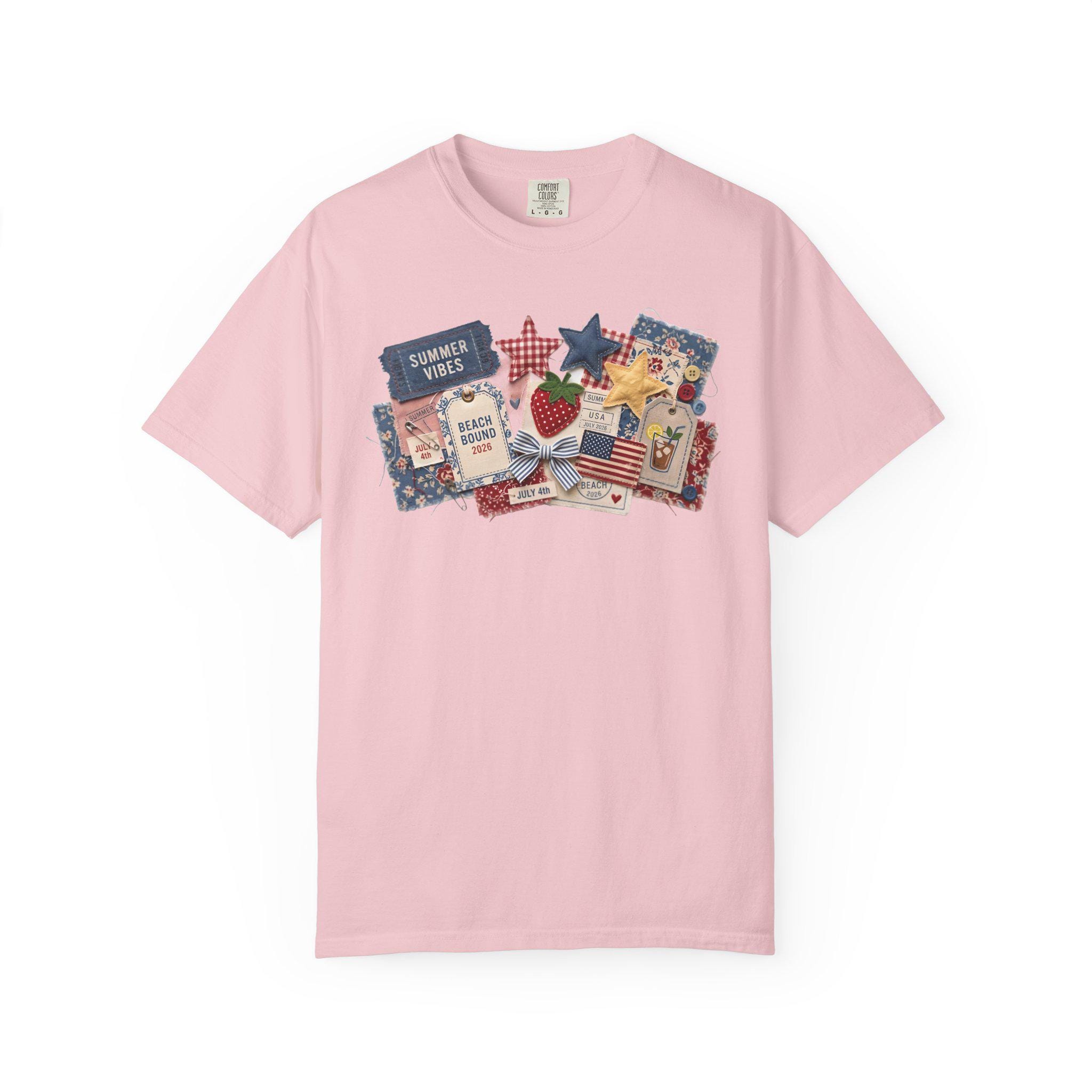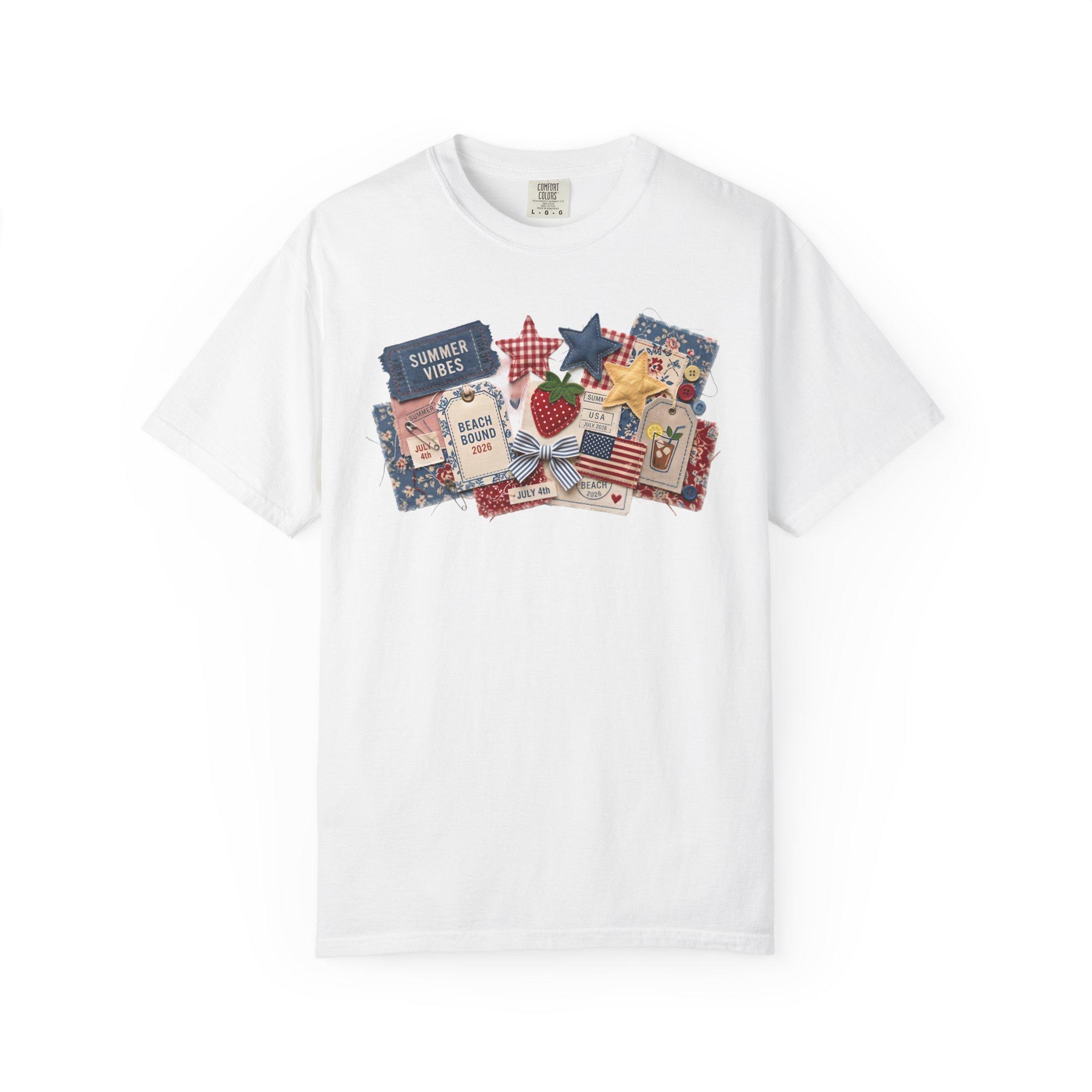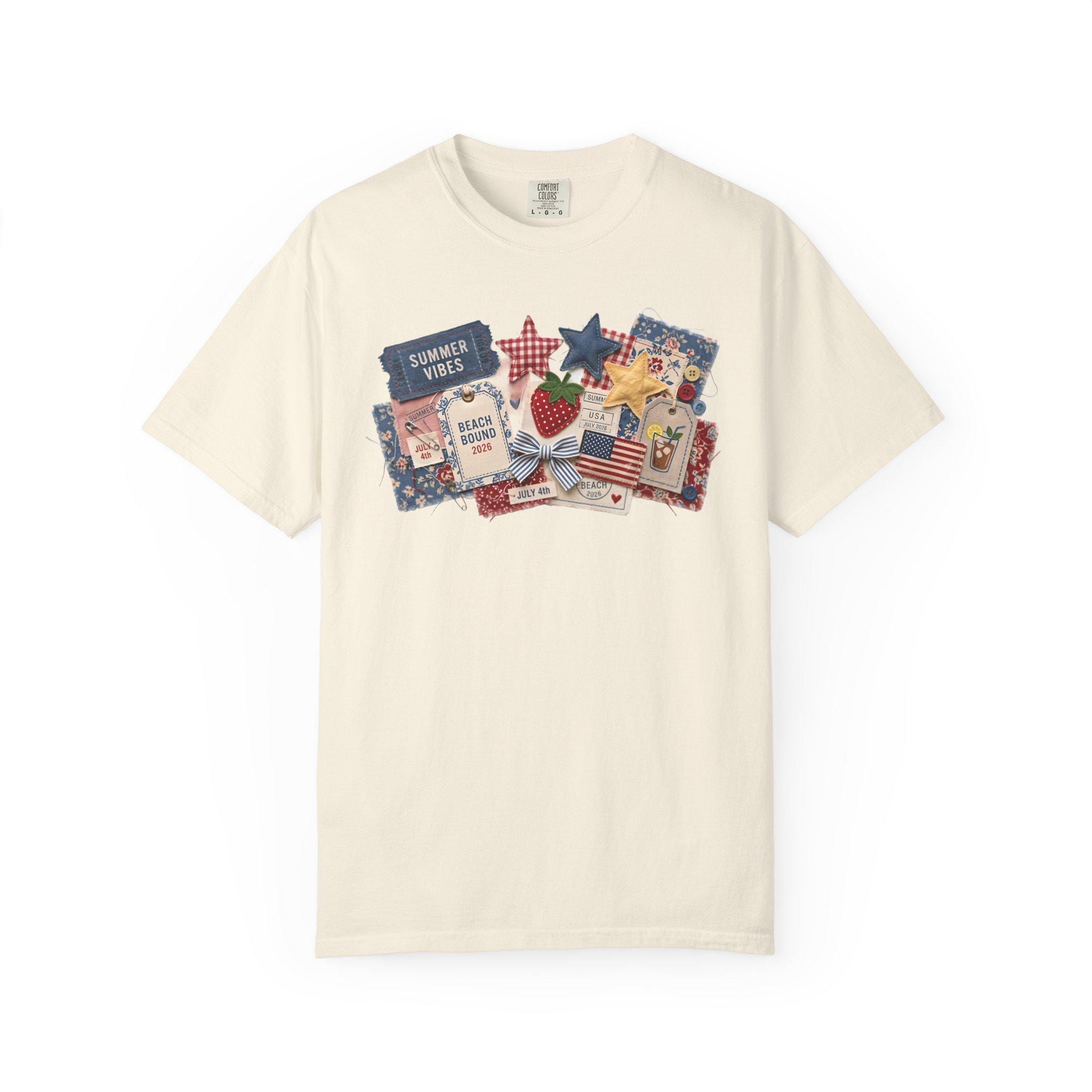 Summer Vibes Americana Shirt, Comfort Colors 1717 Patriotic Collage Tee, 4th of July Faux Patchwork T-Shirt